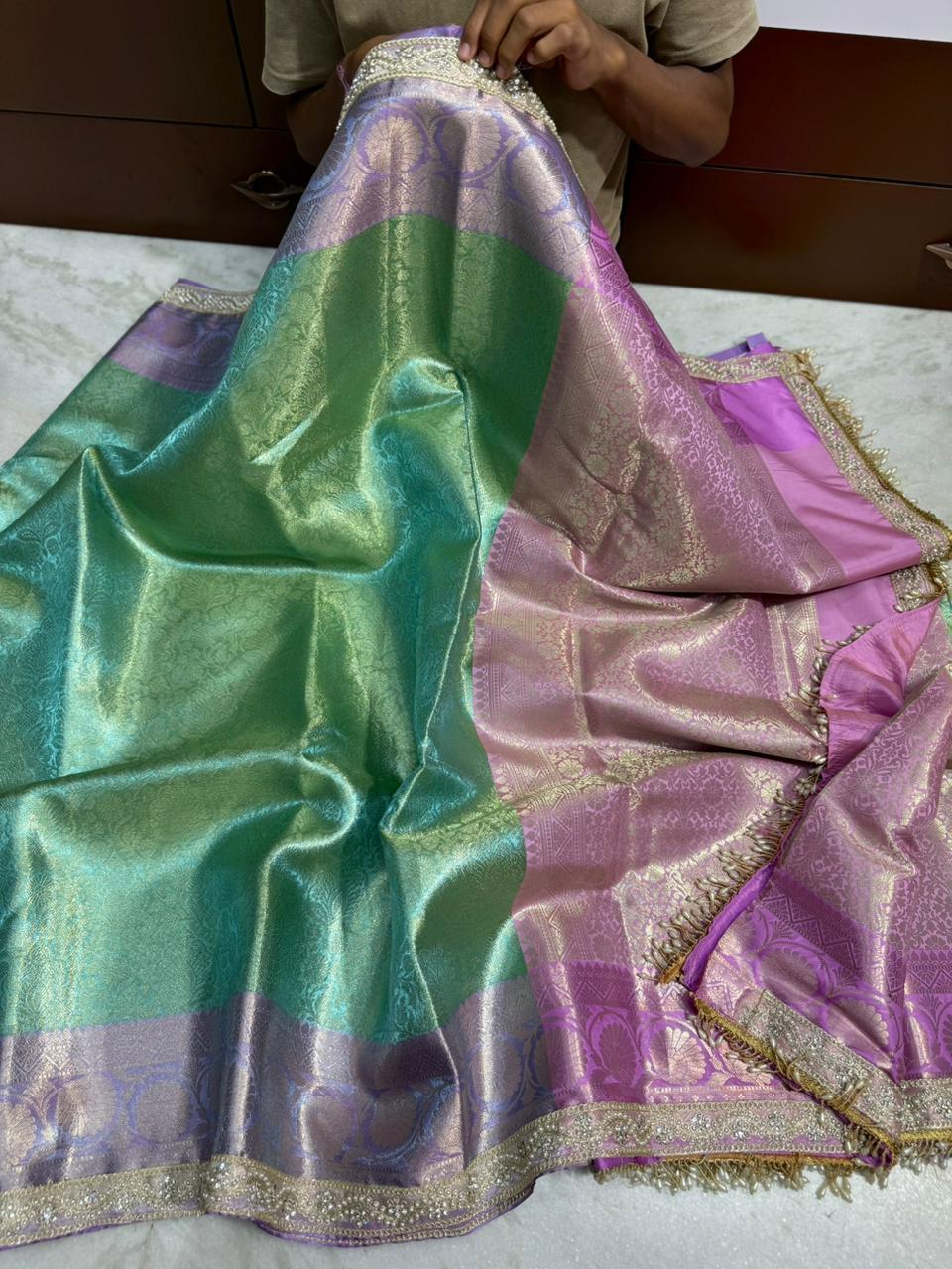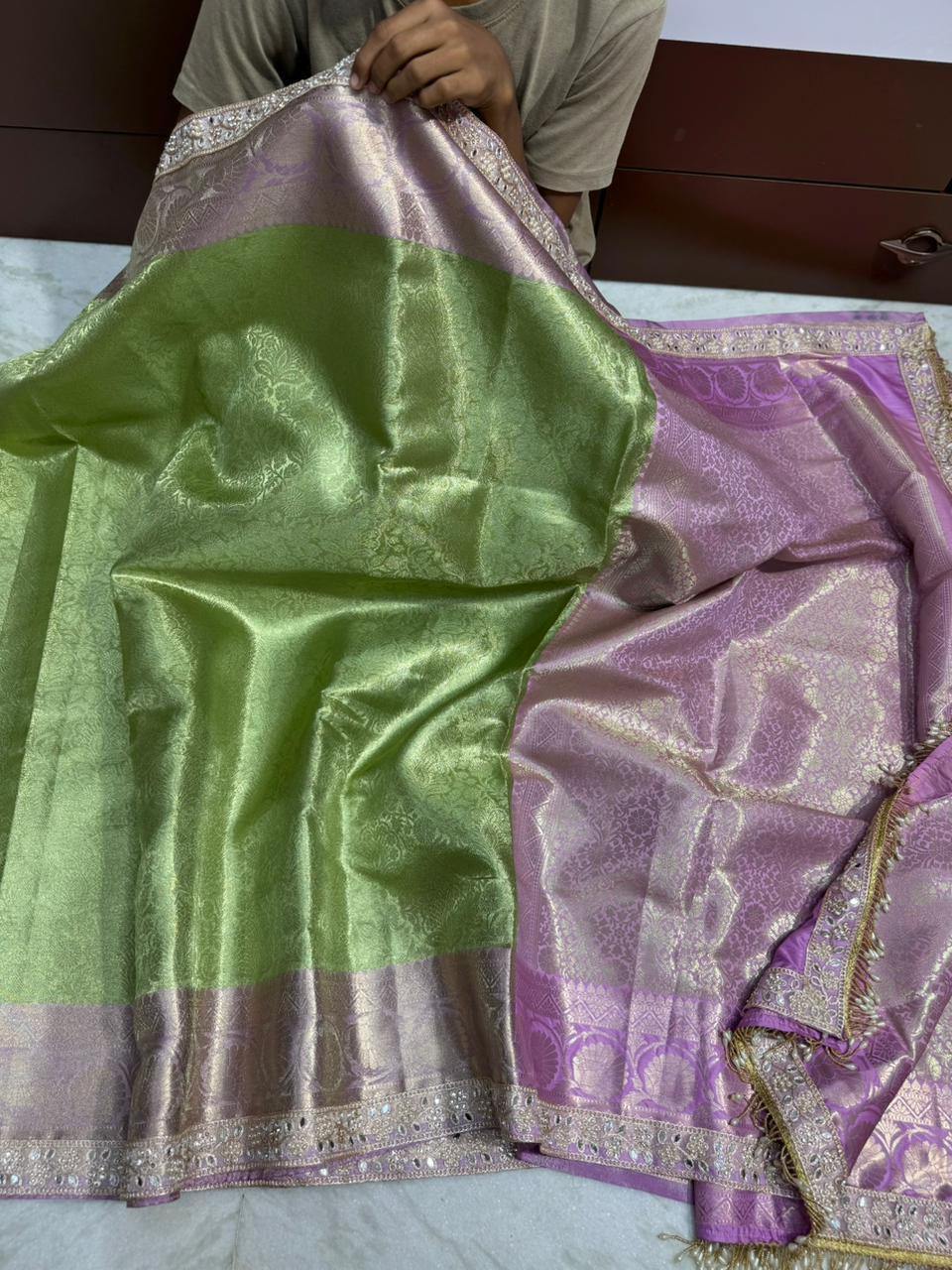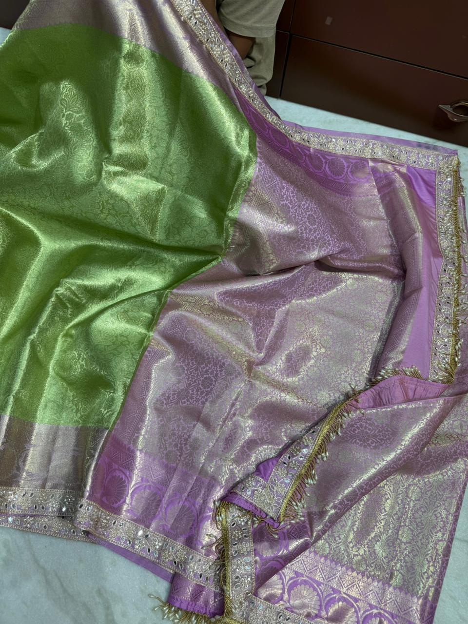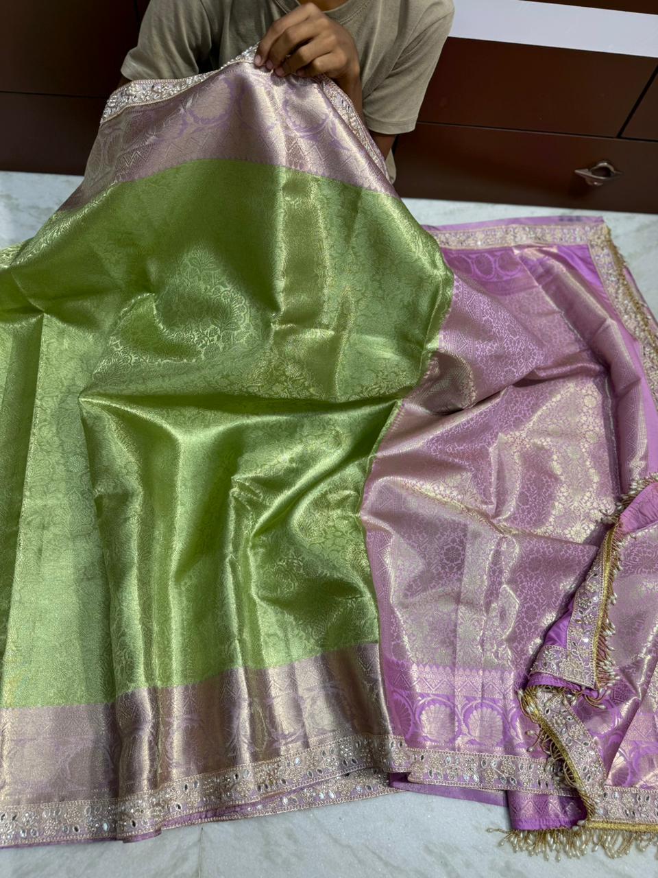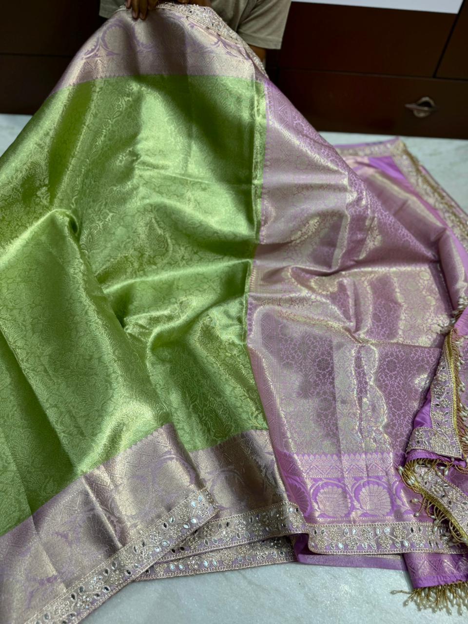 ✨ Banarasi soft premium quality tissue Sarees with contrast zari border with fancy lace work