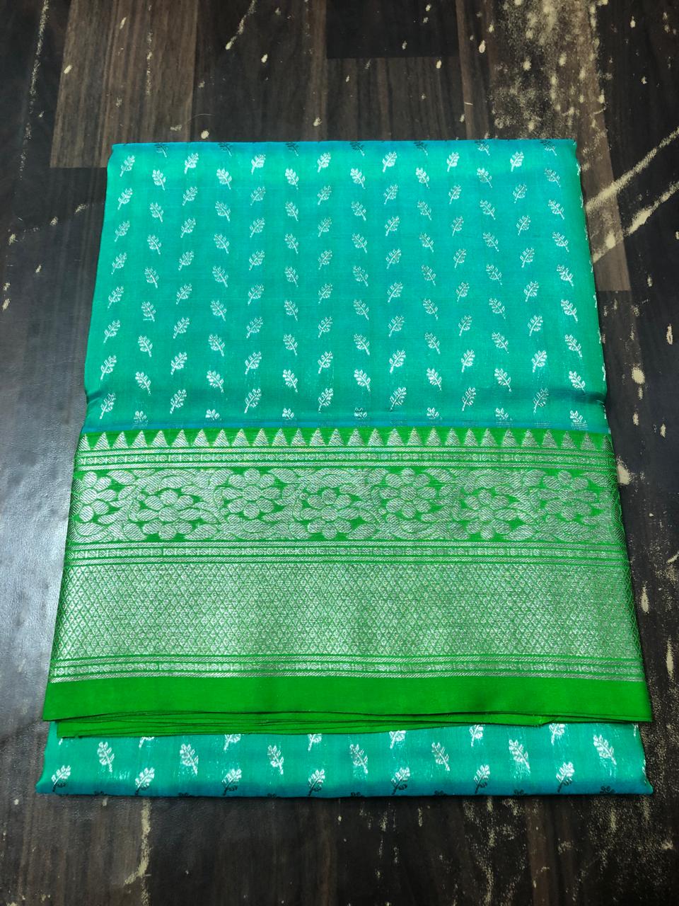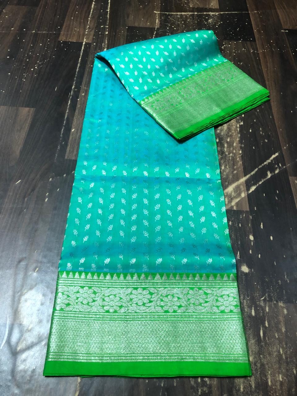 ✨ Pure Soft Silk Saree – Aqua Blue & Parrot Green Combination ✨