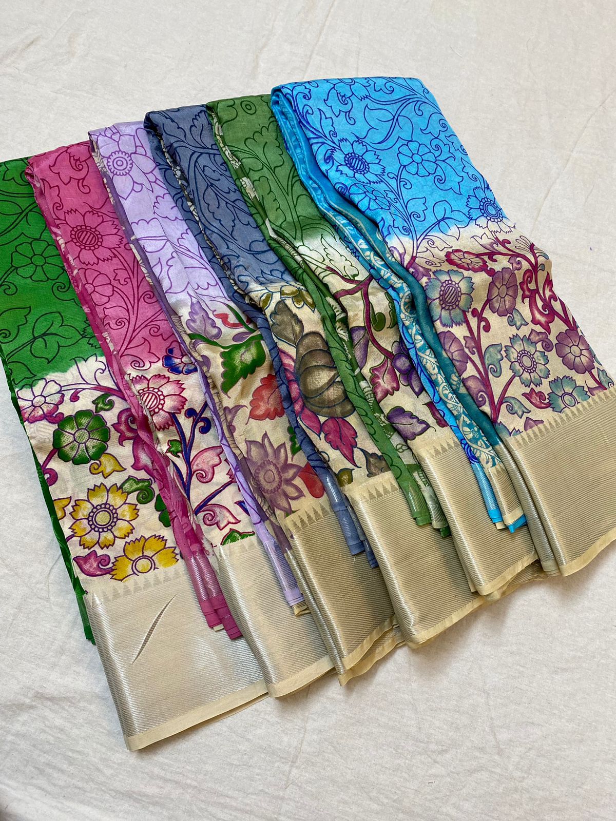 Pure Handloom Kalamkari Silk Sarees with zari woven nizam borders Which are Very flowy nd feel good in touch
