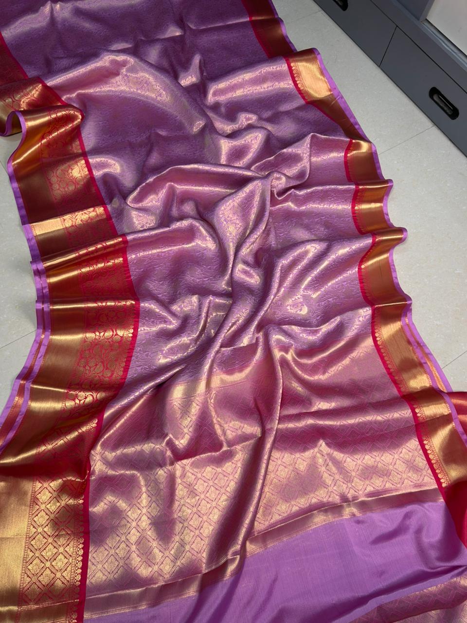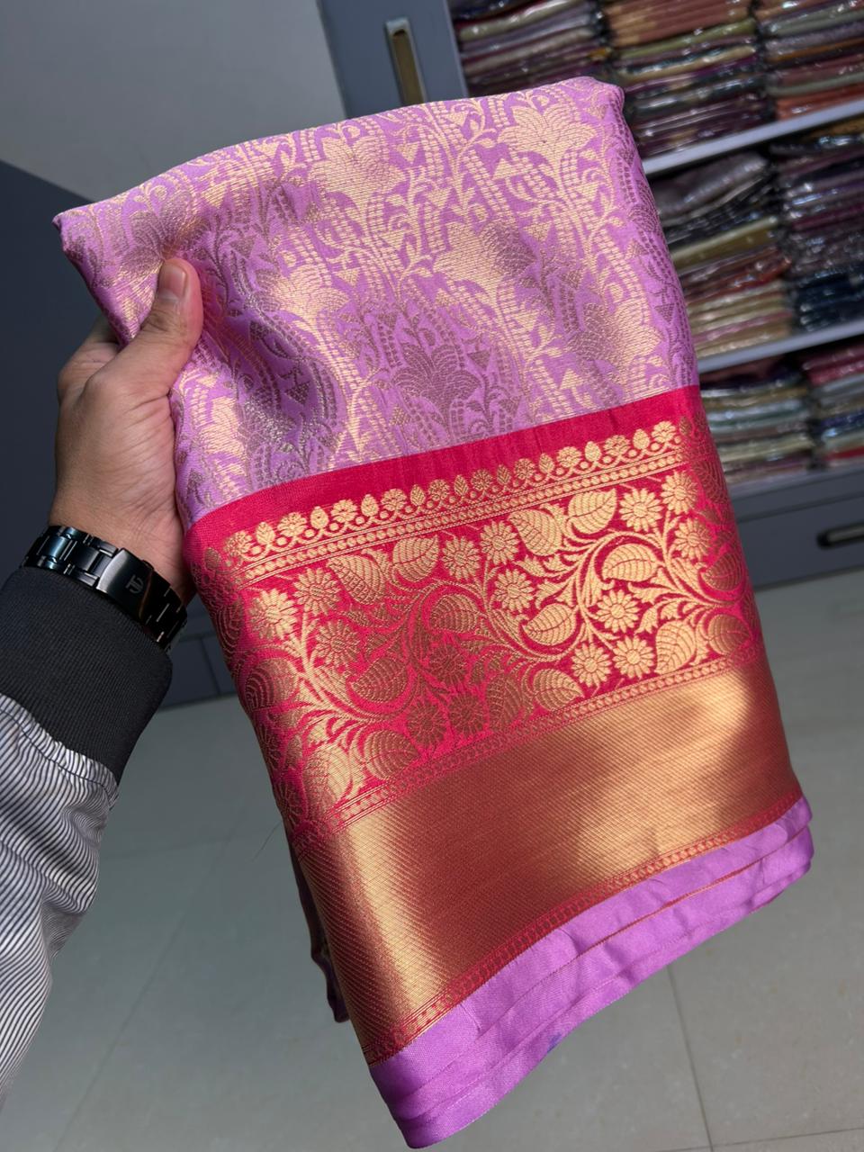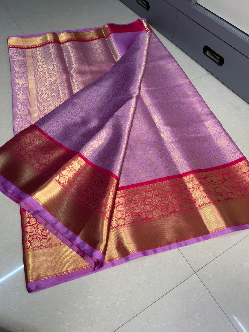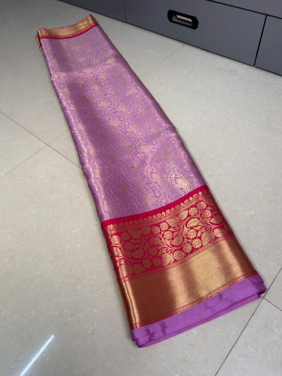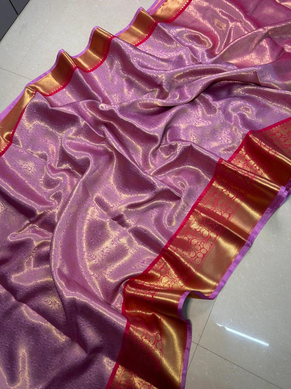 Semi katan soft silk brocade saree all over body weaving with double zari border